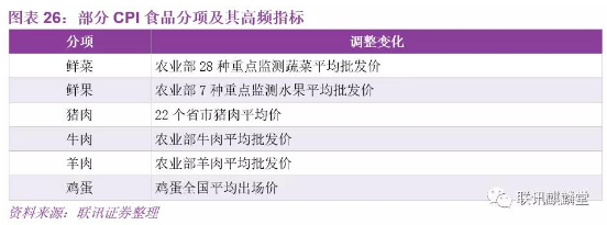 第一,对猪肉、鲜菜、蛋类、鲜果这四项,在2016年到2018年对应月份环比均值的基础上,根据供需状况进行加成,得到今年对应项的环比。用环比均值法计算出各项的同比后,再乘以对应的权重,计算出各项对CPI同比的拉动。