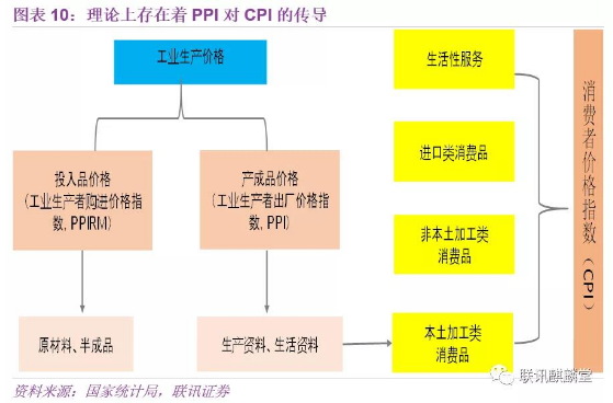PPI指数反映的是一揽子工业品出厂价格,CPI指数反映的是一揽子消费品和服务的价格,工业品位于产业链的上游,因而理论上存在着PPI对CPI的传导。