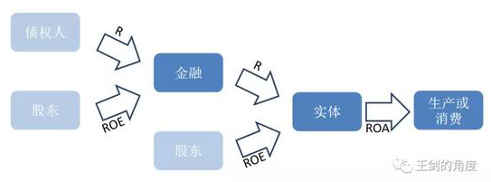 人类的主要经济活动可以体现为生产或消费,在现代信用经济中,需要为此投入资金。资金来源无非是自己(股东)投入的股权资金,和借来的资金。当出借资金的行为变成专门的生意后,就出现了金融业,这件事发生得非常古老。同样,金融业也和实体一样,也有它自己的股东和债权人。因此,整个过程中,其实存在两轮财务杠杆,分别是实体的财务杠杆和金融业的财务杠杆。