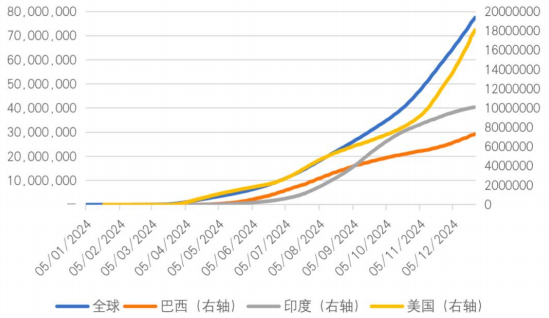 图4 全球与重点国家的新冠疫情累计确诊人数
