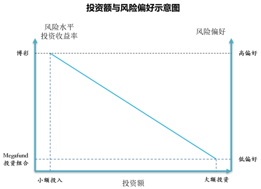 人们之所以愿意买彩票,原因在于每注彩票的份额很小,但中奖的回报率很高。满足了人们以小博大的心理。但拥有大额资金的投资人往往不会投资高风险项目,他们更愿追求低回报,但安全性更高的项目。因此,风险偏好与投资份额大小呈反比关系。