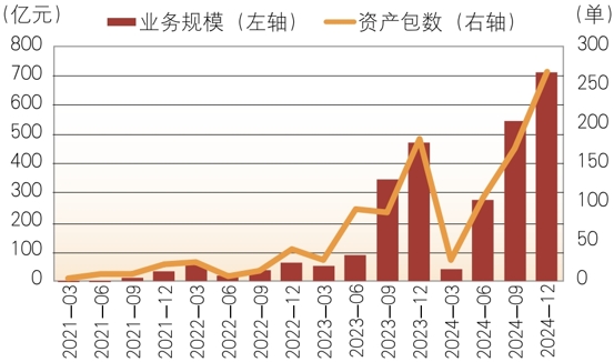 2024年,在银登中心市场范围内的转让业务仍呈现较快发展势头,各季度数据呈现单调增长态势。分类来看,其中零售类资产成交资产包573个,成交金额达到1584亿元,企业类资产成交资产包239个,成交金额达到675亿元,总体约呈现2∶1的比例关系。形成这一现象,一方面是因为零售不良资产处置压力更大,转让需求更为迫切;另一方面是因为目前零售不良资产仅能通过银登中心市场批量转让,而企业类不良资产则可以通过互联网平台或线下转让,渠道相对更加丰富。