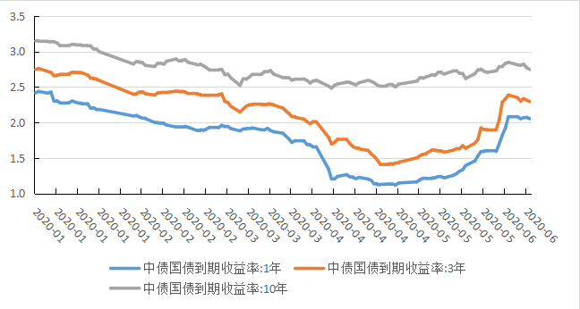 图1 2020年以来1、3、10年期中债国债到期收益率曲线