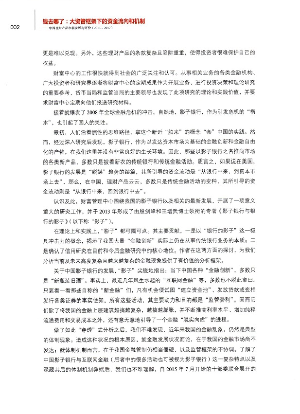 在我国,据说住宅小区的保安每逢遇到访客,都会提出两个深刻的哲学问题:你从哪里来?到哪里去?如果将你换成钱,那么,这两个问题实际上也正在让金融界饶头。全球危机后,“影子银行”成为国内外热门话题,金融界对其历史渊源、范畴争论得热热闹闹。2014年,针对我国以银行为主导的金融结构特征,笔者凑了一下热闹,提出了一个新概念——“影子银行”。无论“影子银行”,还是“银行的影子”,说来说去无非都是想回答小区保安的问题,只不过对象是“钱”:钱从哪里来?到哪里去?