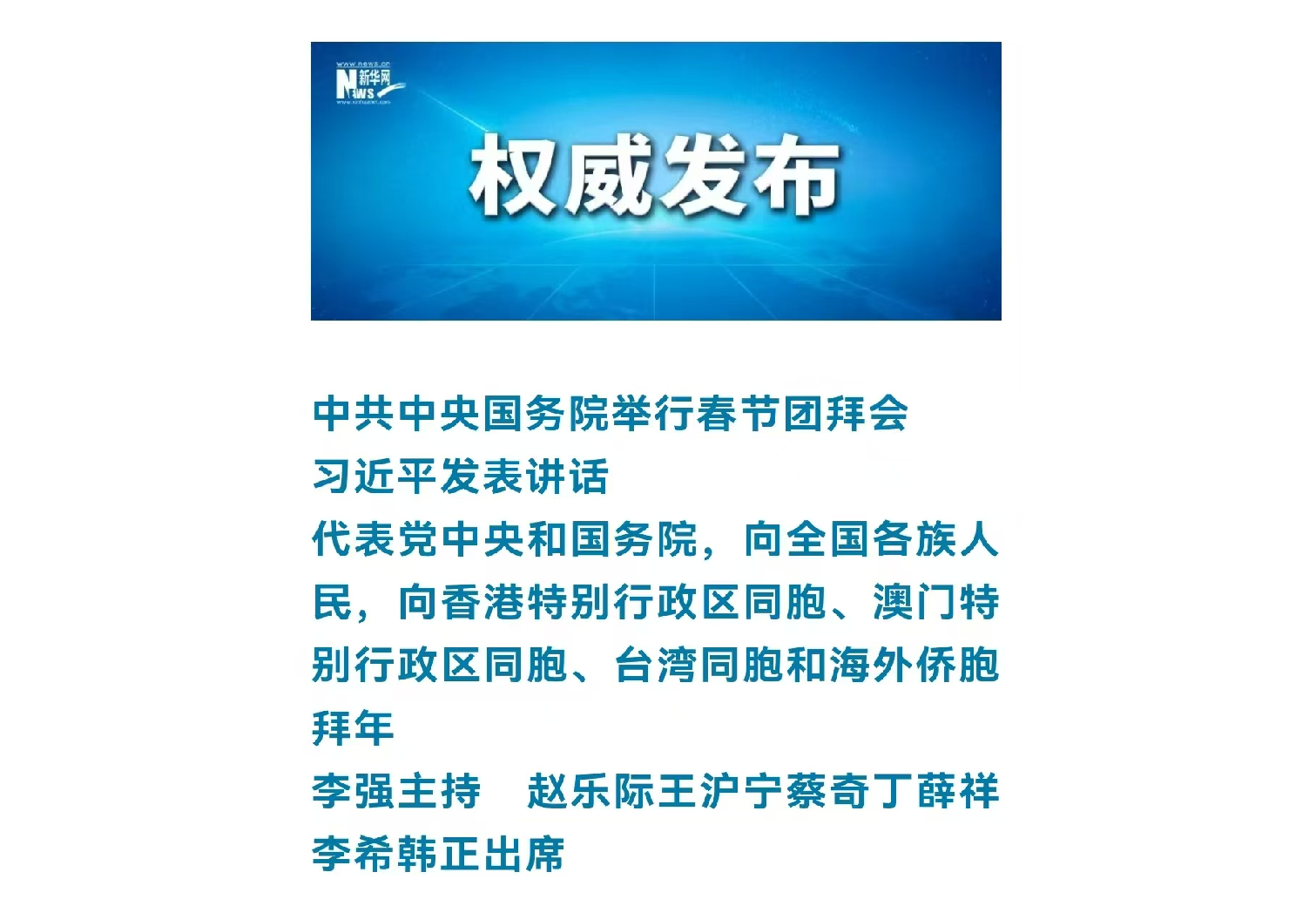 中共中央国务院举行春节团拜会 习近平发表讲话